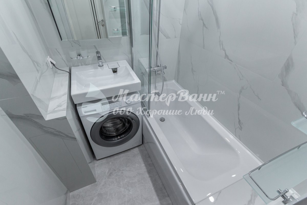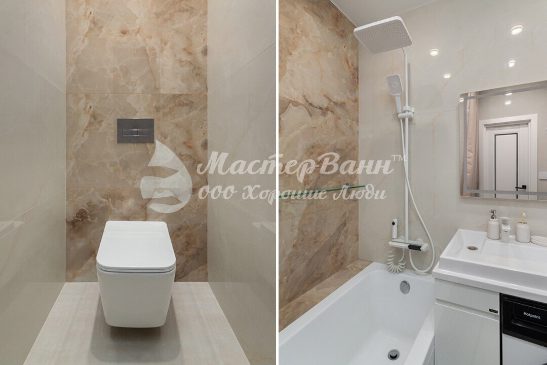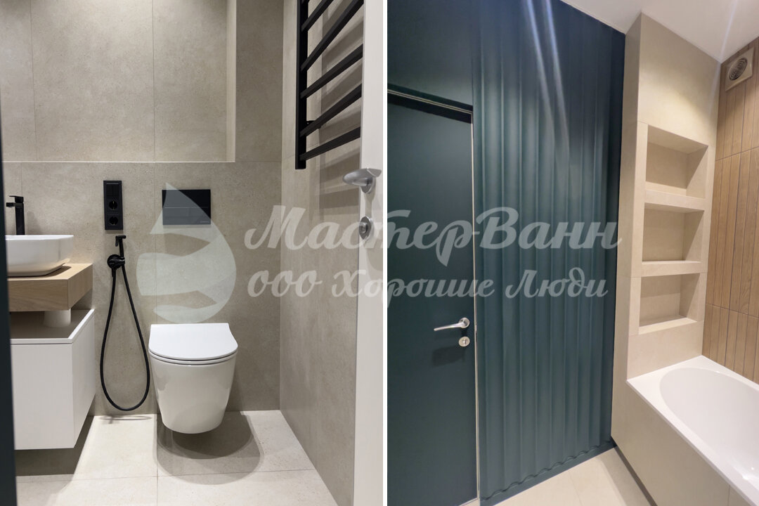 После некачественного ремонта от застройщика обратились в компанию "МастерВанн" за полной переделкой ванной комнаты. Обсуждался и продумывался каждый этап работ. Работы были сделаны в полном объеме, в финальной смете не оказалось неожиданных пунктов. Как итог – имеем красивую, удобную, а главное качественно сделанную, ванную комнату. На деле всё оказалось даже красивее, чем ожидалось. За время использования недостатков не было выявлено.