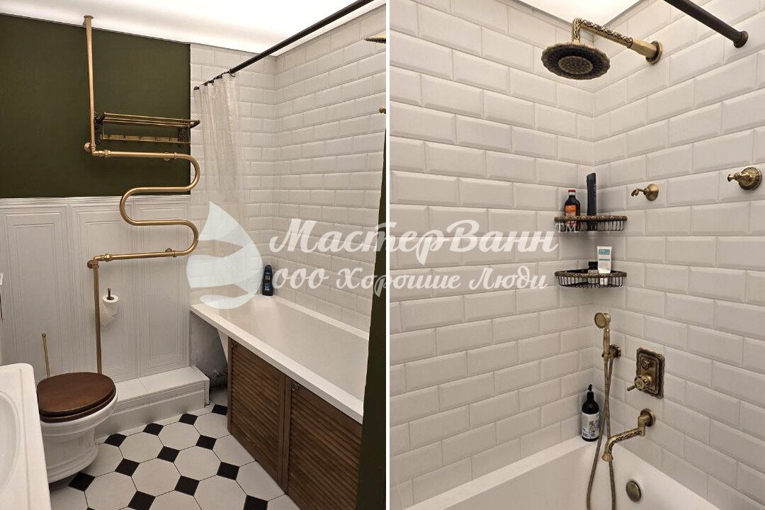 Мне полностью сносили старую плитку, сантехнику убирали, и устанавливали всё новое. У меня был один мастер, в общении с ним всё хорошо. Ванну я ещё ни разу не принимала, потому что после ремонта в разъездах, но внешне, вроде, всё отлично, что хотела, то и получила.